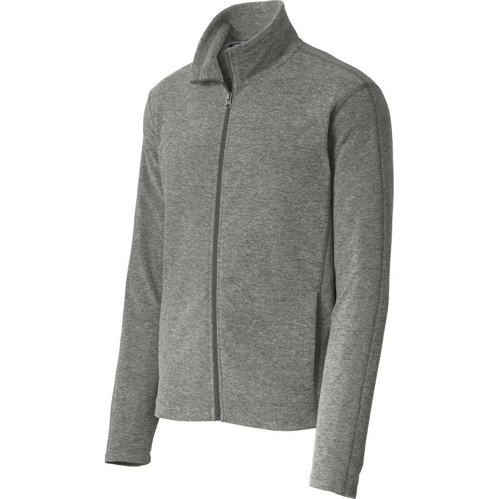 With a sophisticated look that fits in everywhere you go, the Port Authority Men's Pearl Grey Heather Microfleece Full-Zip Jacket makes an excellent gift for your team on employee appreciation day. Just make sure to add your corporate logo to create a walking advertisement for your company. Coverstitched seams add panache to a jacket that contains 100% polyester fleece. Tricot pockets also create a style element that doubles as a convenient place to store important possessions. The hem and open cuffs ensure you enjoy wearing a highly breathable jacket in all types of weather conditions.