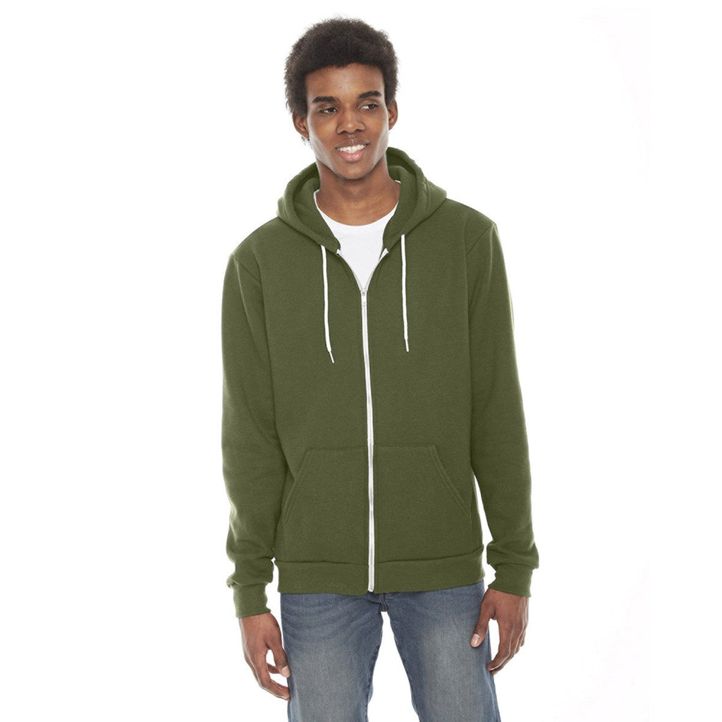 Allow us to introduce you to the classic hoodie. The American Apparel Unisex Barrack Green Flex Fleece Zip Hoodie features a 50%-50% cotton-polyester blend that's not only comfortable, but easy on the eyes as well. And the hood features a finished polyester drawcord that's more durable than those cheap drawcords you've been using in the past, only to watch them break after repeated washings. With a sly pouch pocket and a sideseamed design, this hoodie has everything you could want in terms of classic style and functionality. And if that's just too much "classic" for you, you can always update this hoodie with your own custom printing.