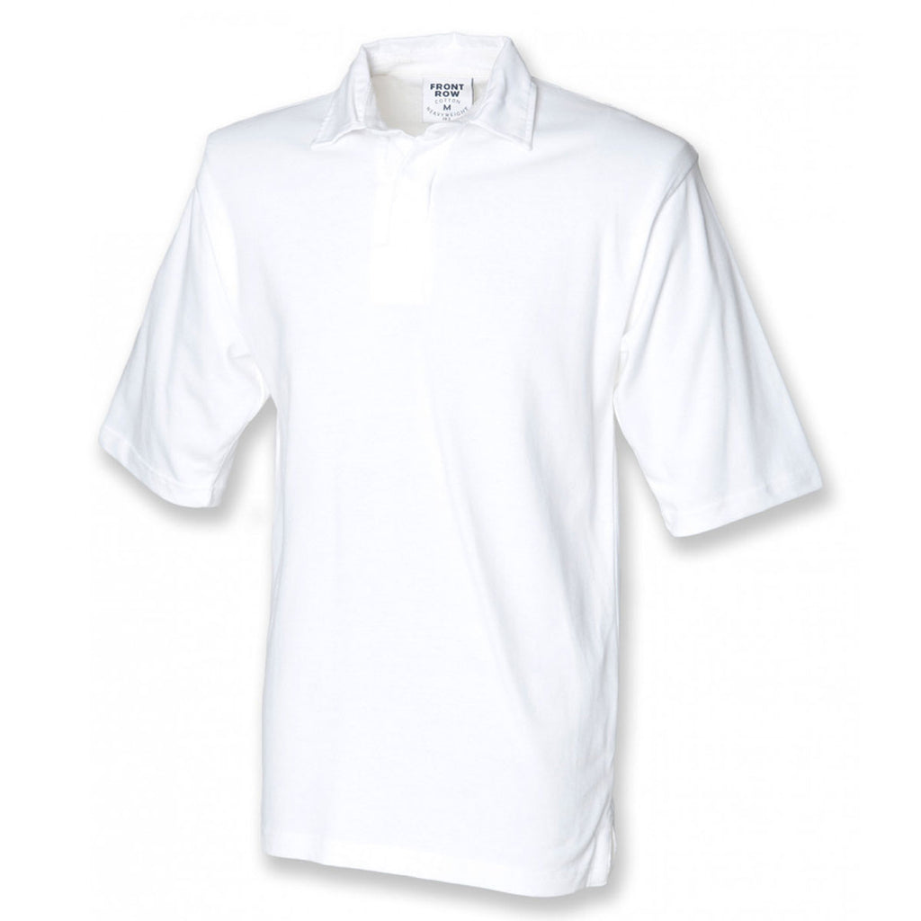 The timeless look of the Front Row Men's White Short Sleeve Rugby Shirt ensures your team will be excited to wear it as often as possible. The classic yet simple design makes it the perfect backdrop for your custom logo or design, ensuring it is highly visible at all times. Available in classic color options, the contrasting woven rugby collar gives it a sporty and stylish appearance. Along with a high quality, heavyweight cotton, this wearable shirt has a durability that ensures it perfectly represents your brand.