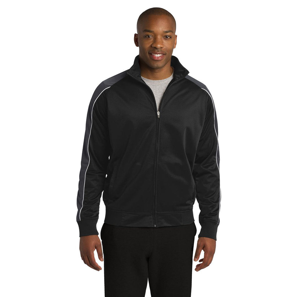 When the weather gets tough, so must you. That’s the idea behind this Sport-Tek Men's Black/ Iron Grey/ White Piped Tricot Track Jacket. Add your own custom embroidery to make this a piece of corporate apparel that anyone can enjoy. Layering is ideally suited to serve as your canvas, and this is an item that will work for you in the elements, not against.