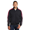 Corresponding Women's Style: Sport-Tek Women's Black/True Red Dot Sublimation Tricot Track Jacket