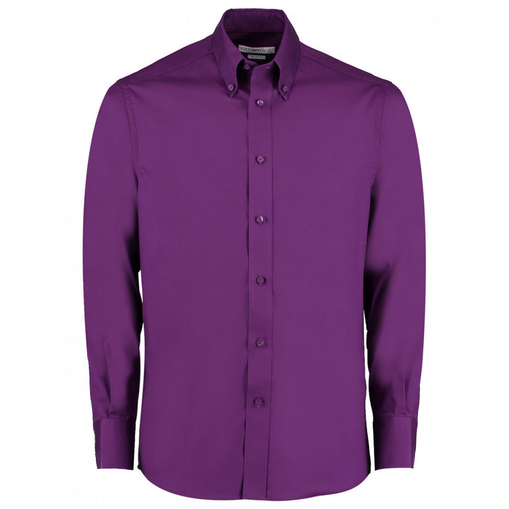 Long-sleeved for the ultimate smark look, the Kustom Kit Men's Dark Purple Premium Long Sleeve Tailored Oxford Shirt is simple yet classic. Featuring a fused button-down collar, double-folded sleeves and a two-button cuff, this shirt is about as classic as it gets. And, as there's plenty of room for you to add your very own custom logo, personalizing an entire range of shirts for your workforce to wear is easy. Better still, this shirt has been made using easy-iron fabric - perfect for maintaining a smooth, sleek look after every wash.
