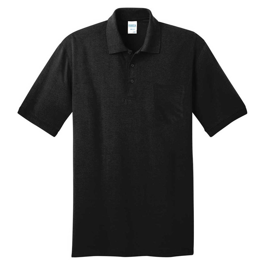 Inspired by minimalist architecture, this Port & Company Men's Jet Black Core Blend Jersey Knit Pocket Polo is a great answer to warm-weather uniforming shirts. It boasts a lightweight and comfortable construction with a balanced cotton-polyester blend. A pocket adds character to this casual polo while a 3-button placket ensures comfort fit. It can be easily paired with contrasting chinos, cargoes or denim for an effortless look and style. Double-needle stitching hem means durability. Spruce up your company's professionalism by having your logo on this polo that lets individuals know who to contact if they’re interested in reaching out to your business.