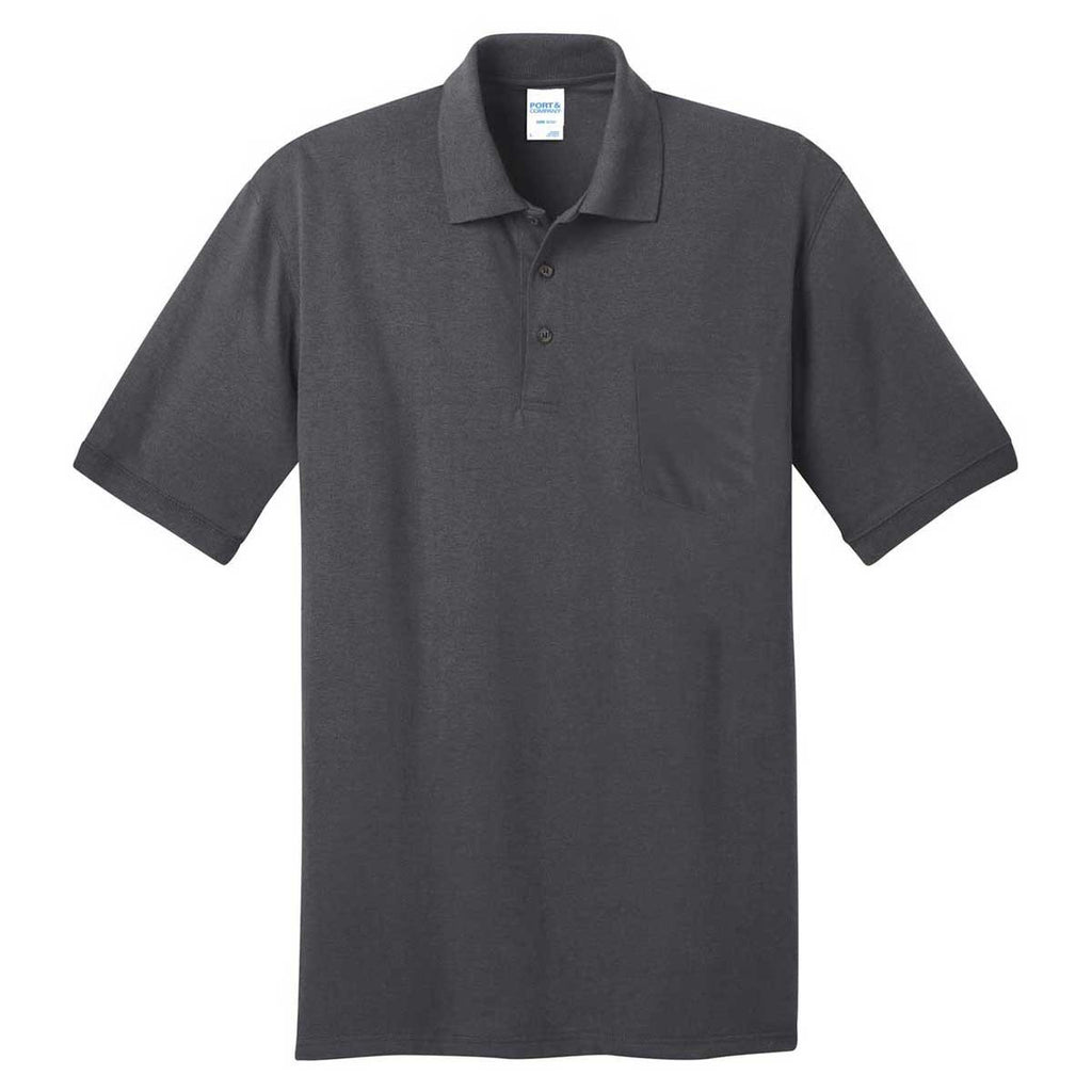 Inspired by minimalist architecture, this Port & Company Men's Charcoal Core Blend Jersey Knit Pocket Polo is a great answer to warm-weather uniforming shirts. It boasts a lightweight and comfortable construction with a balanced cotton-polyester blend. A pocket adds character to this casual polo while a 3-button placket ensures comfort fit. It can be easily paired with contrasting chinos, cargoes or denim for an effortless look and style. Double-needle stitching hem means durability. Spruce up your company's professionalism by having your logo on this polo that lets individuals know who to contact if they’re interested in reaching out to your business.