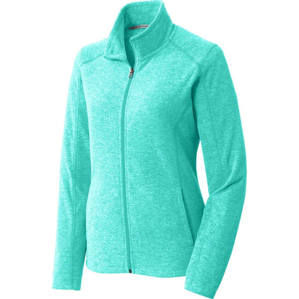 How can a jacket keep you comfortably warm and not cause aggravating perspiration to form on your body? Port Authority Ladies Aqua Green Heather Microfleece Full-Zip Jacket answers the question by containing 100% polyester microfleece that quickly wicks away sweat to cool your skin. Instead of having to take off the microfleece jacket whenever the temperature rises, you enjoy supreme comfort of the super soft fabric that includes an anti-pill finish. Rust resistant exposed coil zippers add style to an already fashionable jacket. Add a custom logo to the jacket for promotional purposes.