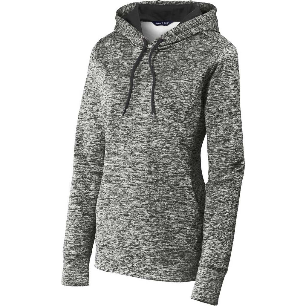 Designed with patented PosiCharge technology, the Sport-Tek Ladies Black PosiCharge Electric Heather Fleece Hooded Pullover does a great job of keeping your skin cool on the hottest days of the year. The 100% polyester moisture wicking fabric transfers perspiration from the skin to the surrounding air quickly. Heathered yarn dye allows you to match the pullover with a wide variety of pant styles, from classic denim blue jeans to khaki shorts. The three-panel hood acts as protection against blasts of frigid winter air. Add your corporate logo to the pullover for free company publicity.