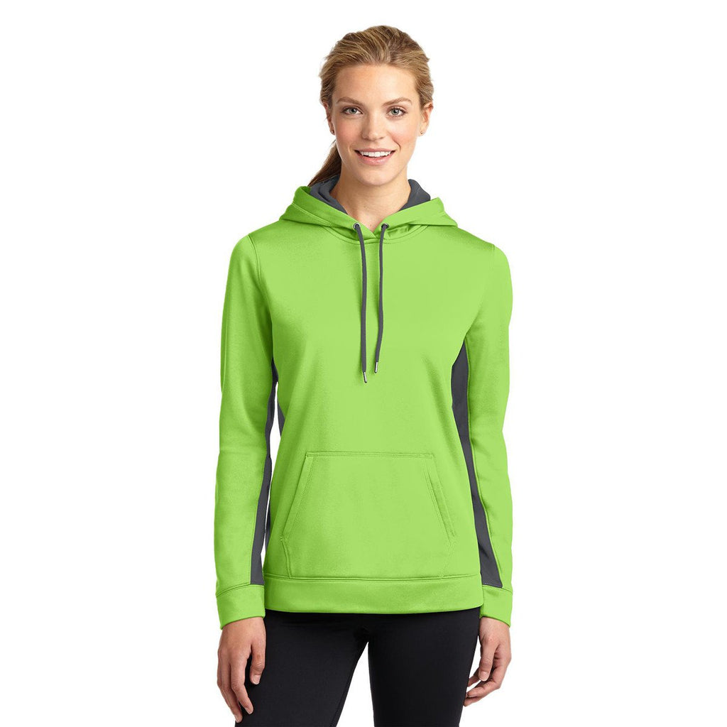 When the weather gets tough, so must you. That's the idea behind this Sport-Tek Women's Lime Shock/ Dark Smoke Grey Sport-Wick Fleece Colorblock Hooded Pullover. Add your own custom embroidery to make this a piece of corporate apparel that anyone can enjoy. Layering is ideally suited to serve as your canvas, and this is an item that will work for you in the elements, not against.