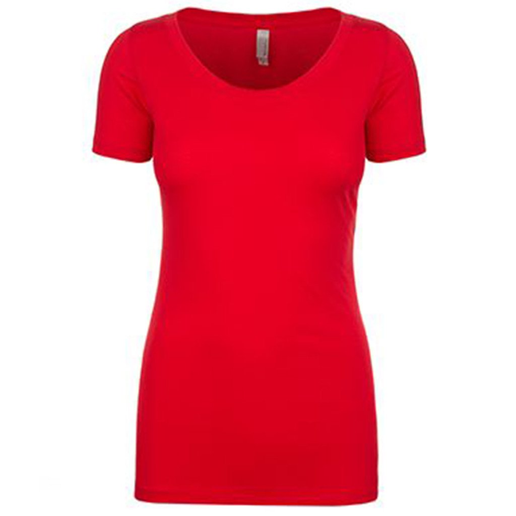 there's the usual tee shirt, and then there's the scoop neck. The two are not as alike as you may think. Sure, the tee shirt is a casual option. So is what you see here. But what you see here is great for layering, for more advanced sartorial choices, and simply to enjoy around the house or while out and about. Let's see any ordinary tee do what the Next Level WoMen's Red Scoop Neck Tee can do, then we'll be impressed. All that's missing from this picture? Your own custom logo put right on the front so you can rep your brand while you rep some serious style.