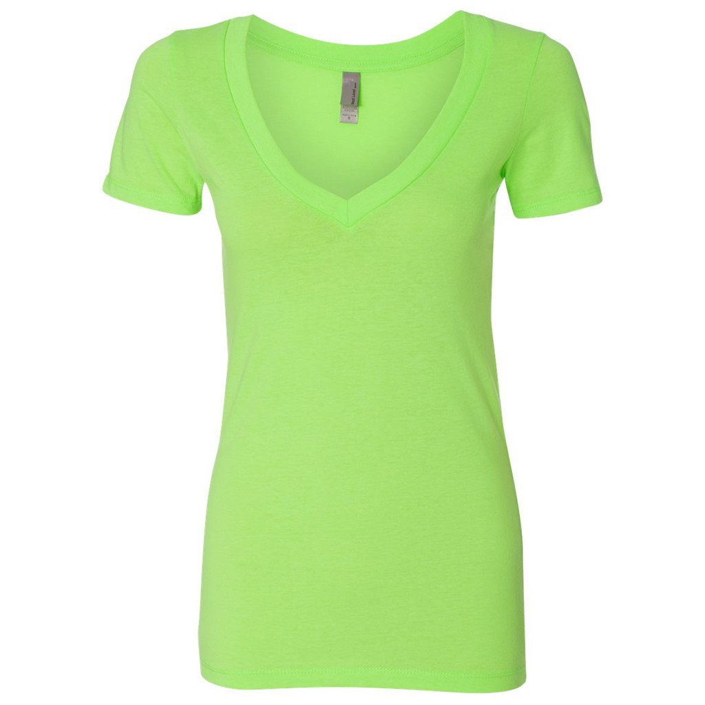 Getting a tee shirt to feel comfortable isn't always easy. You need quality fabric, exceptional design, and even enough sartorial know-how to feel confident wearing it out and about. With the Next Level Women's Neon Green Deep V-Neck Tee, however, you get it all in one package-all with the nice touch of a deep V neck. Simply add your custom logo to this deep V tee to experience the most possible in brand awesomeness from a single shirt-and we at Merchology can help you out with that. Unlike the normal crewneck tee, you'll find more versatility here for repping your brand.
