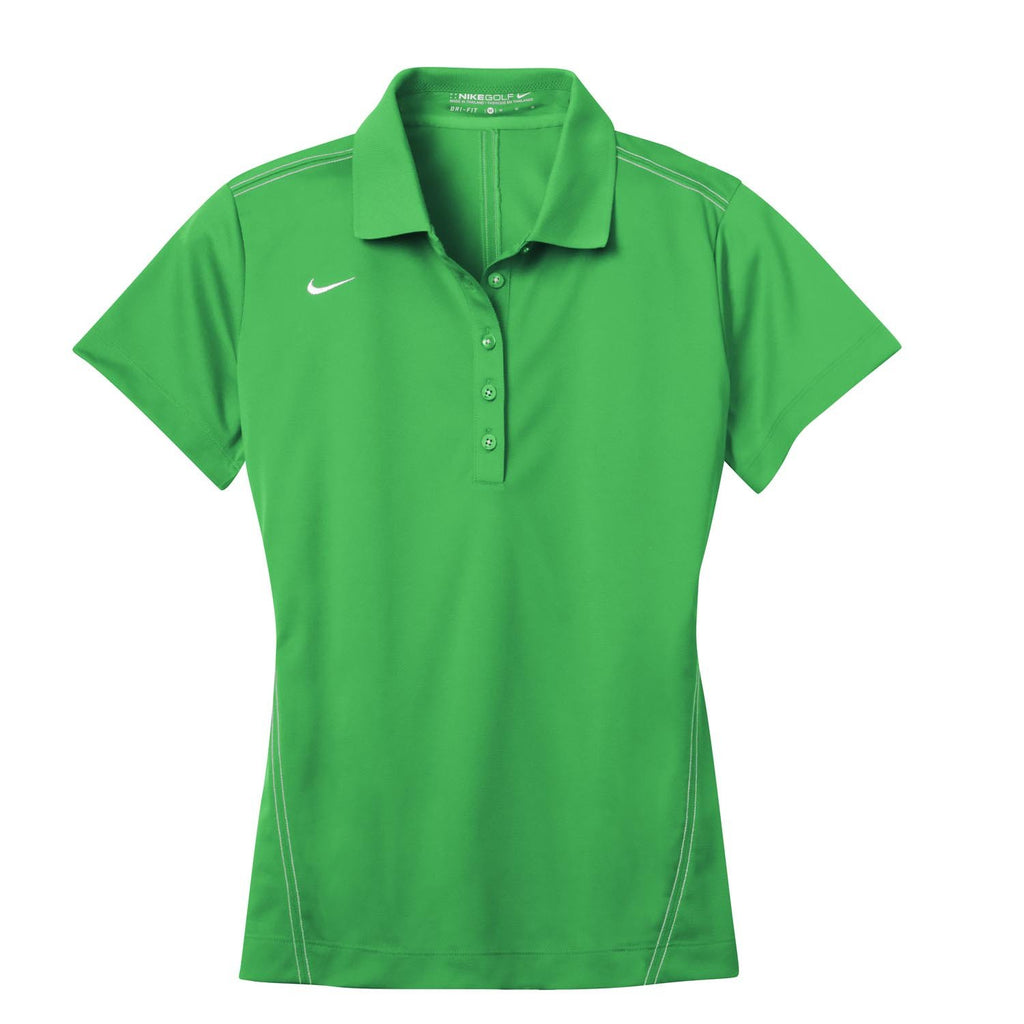 The Nike Golf Women's Dri-FIT Green Sport Swoosh Pique Polo shirt has been made with Nike Golf's innovative Dri-FIT moisture management technology keeps the wearer cool and refreshed. Additional features of this women's golf shirt include a flat knit collar, dyed-to-match buttons and open-hem sleeves. To finish off the look there is a contrast Swoosh trademark embroidered on the right chest.