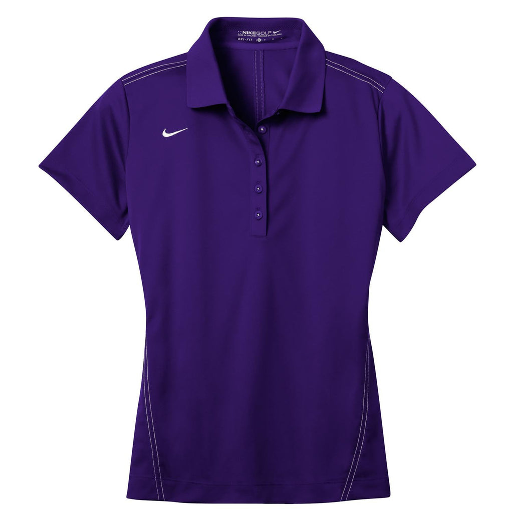 The Nike Golf Women's Dri-FIT Purple Sport Swoosh Pique Polo shirt has been made with Nike Golf's innovative Dri-FIT moisture management technology keeps the wearer cool and refreshed. Additional features of this women's golf shirt include a flat knit collar, dyed-to-match buttons and open-hem sleeves. To finish off the look there is a contrast Swoosh trademark embroidered on the right chest.