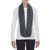 The lightweight Anvil Women's Heather Dark Grey Infinity Scarf contains cotton, rayon, and polyester. Rayon adds strength to the scarf to keep your neck and ears warm. Super soft cotton feels smooth against the skin. The 35-inch length allows you to create different looking styles to match your fashion preferences. Wear the scarf over a cardigan sweater or a thick parka. Attach your corporate logo to expand the presence of your company at professional networking events.