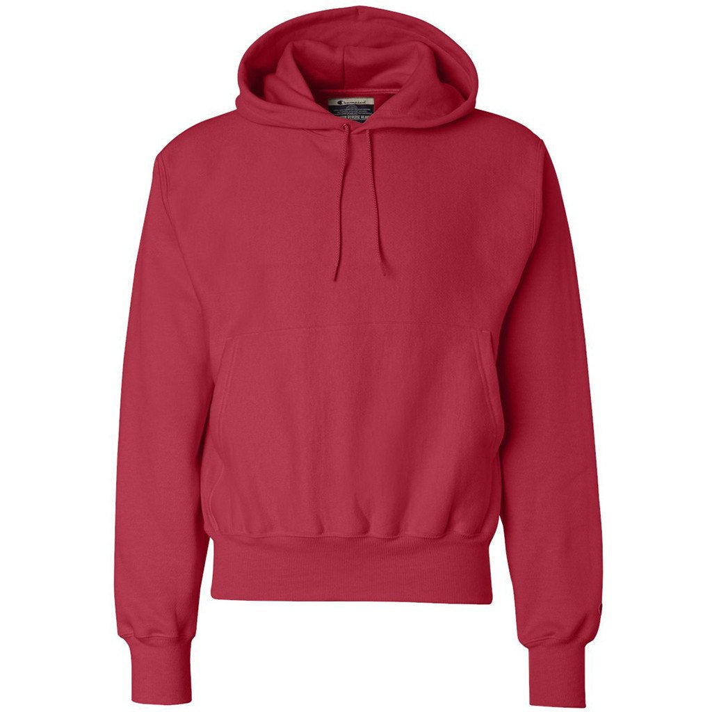 With a cotton and polyester blend, the Champion Men's Scarlet Reverse Weave 12-Ounce Pullover Hood gives you the benefit of wearing two fabrics within one stylish outer garment. Polyester increases the strength of the sweatshirt and the cotton. The two-ply hood keeps your head warm on colder days, as well as protects you against blustery winds. Ribbed knit cuffs stretch to give you more arm flexibility. Take advantage of the large decoration area aside from the Champion "C" logo to attach your company logo. Embroidered apparel gets your brand noticed everywhere you go.