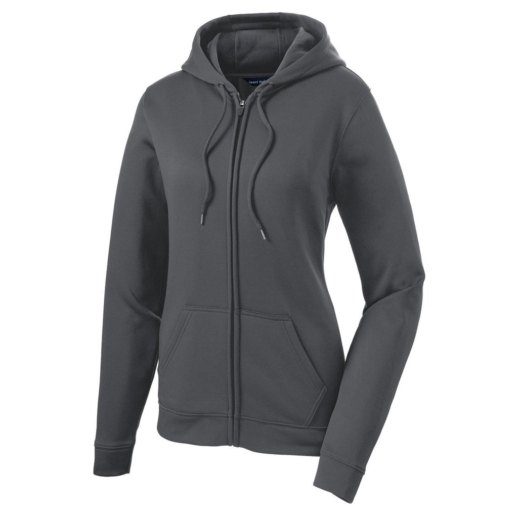 Warming up? Cooling down? Simply enjoying some luxurious weekend time and looking for an extra layer? The Sport-Tek Women's Dark Smoke Grey Sport-Wick Fleece Full-Zip Hooded Jacket can provide all of these functions and so much more.