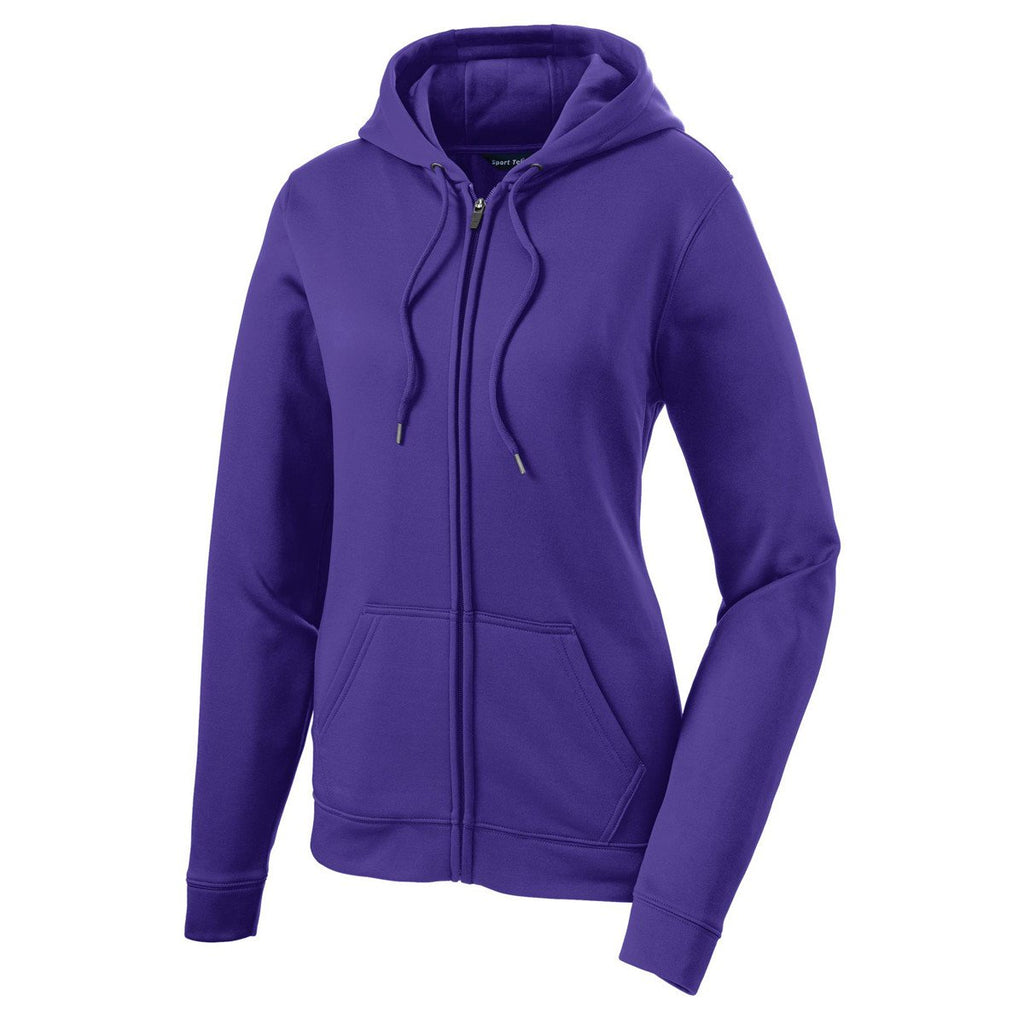 Warming up? Cooling down? Simply enjoying some luxurious weekend time and looking for an extra layer? The Sport-Tek Women's Purple Sport-Wick Fleece Full-Zip Hooded Jacket can provide all of these functions and so much more.