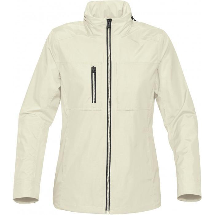Ready to step up your game in more ways than one? Then it's time for the Stormtech Women's White Sirocco Performance Shell, which provides both weather protection and a nice outer layer for casual style. All you need to do to boost the performance of this performance shell? Add your custom logo to it and turn it into a way to market your business.