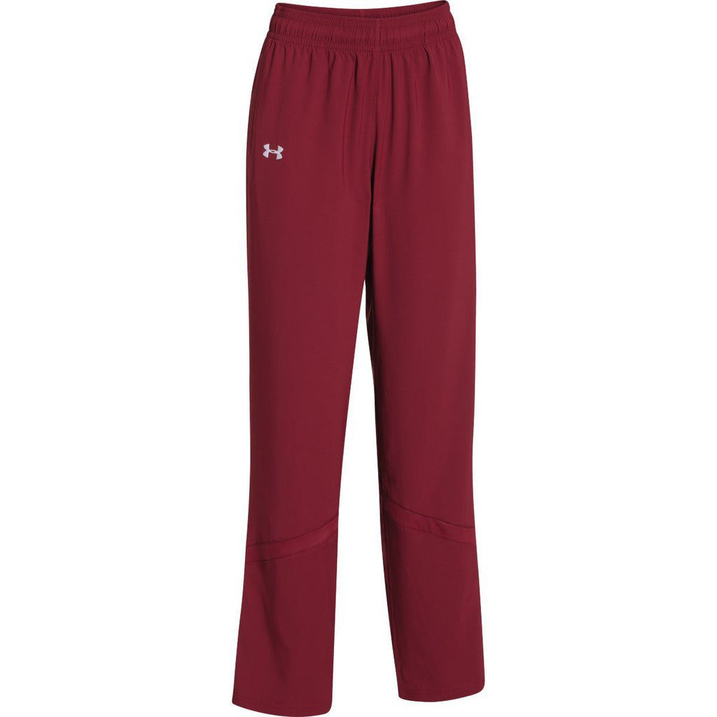 In short, you need this pair of Under Armour Women's Cardinal Pre-Game Woven Pants. Not only do they offer all of the above, they include features like reverse fabric leg insets, open side seam hand pockets, and a water repellant system to help keep you try. Add your team's logo to these pants to represent them at games, at practice—or simply around the house.