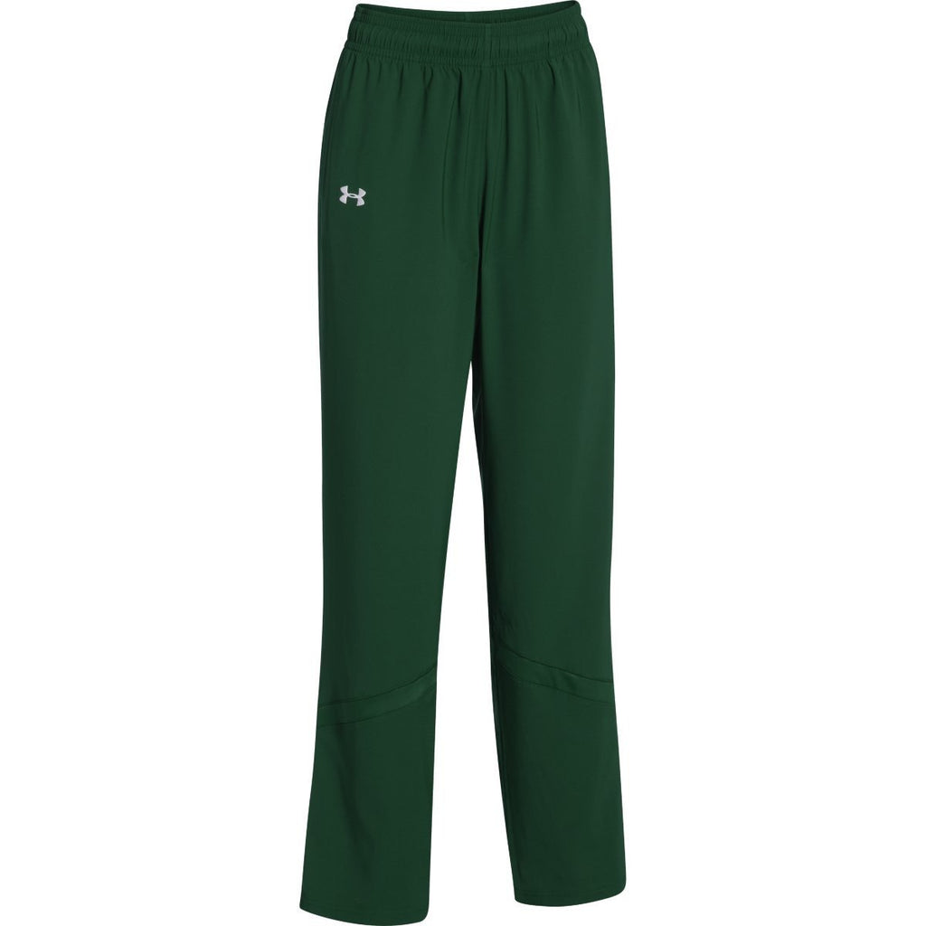 In short, you need this pair of Under Armour Women's Green Pre-Game Woven Pants. Not only do they offer all of the above, they include features like reverse fabric leg insets, open side seam hand pockets, and a water repellant system to help keep you try. Add your team's logo to these pants to represent them at games, at practice—or simply around the house.