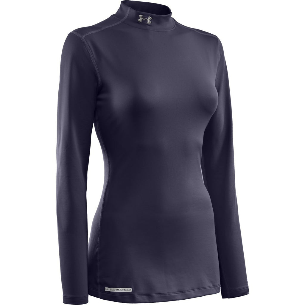 Want something a little more snug but without that “compression” feel that many people don’t enjoy? Then you’ve met the best of both worlds: this Under Armour Women’s Navy ColdGear Fitted L/S Mock has everything you need to stay warm and mobile without ever stifling.>