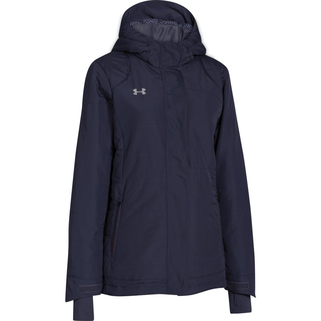 This Under Armour Women's Navy ColdGear Infrared Elevate Jacket accomplishes exactly that with a water-resistant exterior, plenty of warmth inside, and features like a snap storm flap to add to the protection. It's both stylish and utilitarian—which is another way of saying it looks good while being useful at the same time. Add your custom logo to the front to represent your company, event, or team with pride.