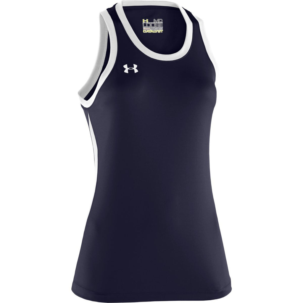 Here’s a serious shirt that might as well say on the front: “for serious women only.” Granted, you can have the Under Armour Women's Navy Recruit Sleeveless T-shirt say whatever you want on the front through our custom screen printing process, but let’s talk about the shirt itself for a moment, shall we? The lightweight but substantial and soft fabric is constructed to give you plenty of comfort even when you exert yourself.>