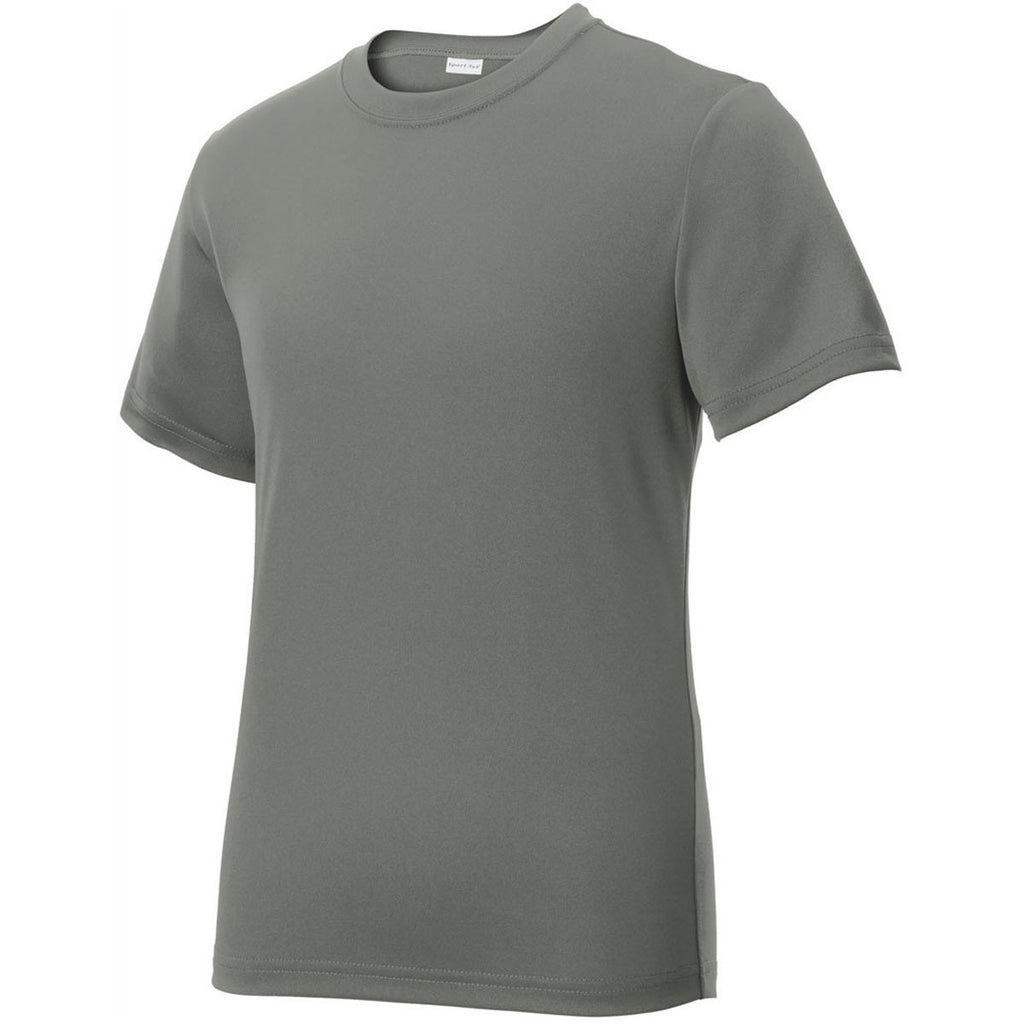 Do moisture laden t-shirts bog you down whenever you need to ramp up the competitive juices? Sport-Tek Youth Dark Smoke Grey PosiCharge Tough Tee contain moisture wicking technology that quickly evaporates perspiration the instant it forms on your skin. The result is a cooling of the skin that invigorates your body. Set-in sleeves allow for more arm movement, which comes in handy on the golf course and tennis court. The super soft fabric endures countless wash and dry cycles, without any of the colors fading. One-hundred percent rugged polyester interlock resists rips and tears. Attach your company logo to the t-shirts to spread the word about your brand.